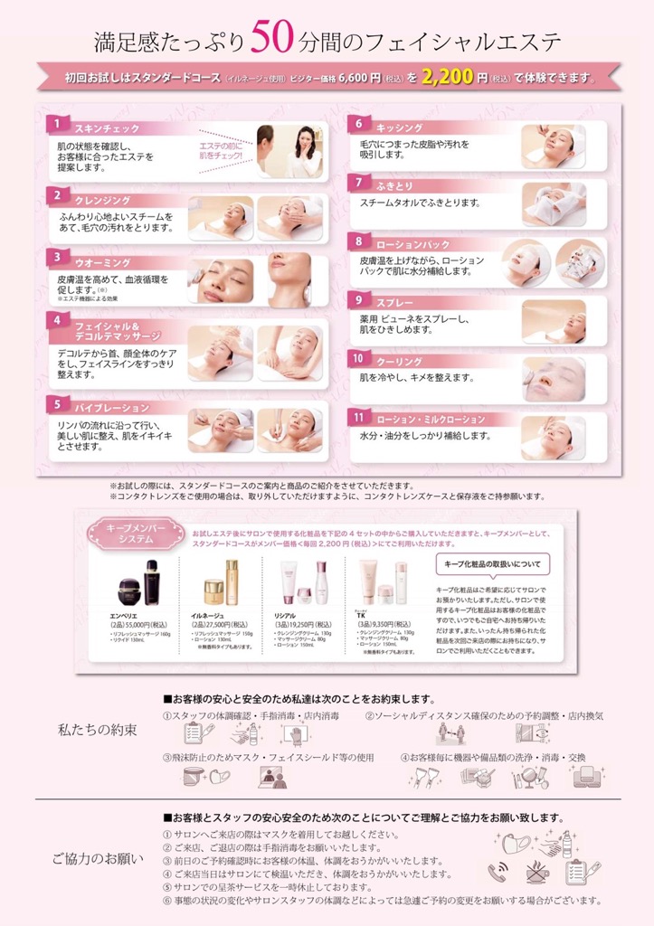 イルネージュシリーズの基礎化粧品を使ってエステをします。